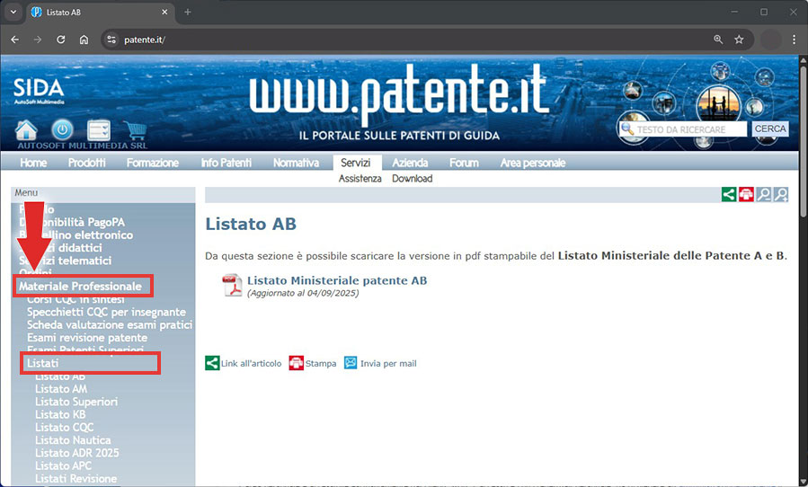 Nell'area personale del sito www.patente.it ("Materiale professionale" --> "Listati" --> "Listato AB") è pubblicata la versione aggiornata del listato ministeriale AB.